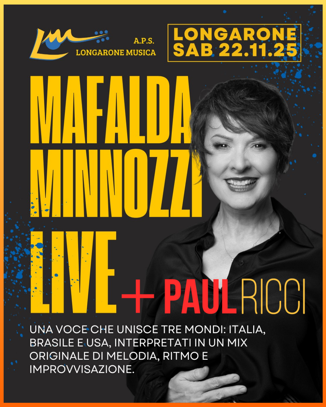 Arriva a LONGARONE una voce che ha conquistato il mondo! Sabato 22 novembre 2025, LONGARONE sarà il palcoscenico di un evento culturale di portata internazionale, ospitando Mafalda Minnozzi per un appuntamento unico che intreccia musica, storia e culture.
